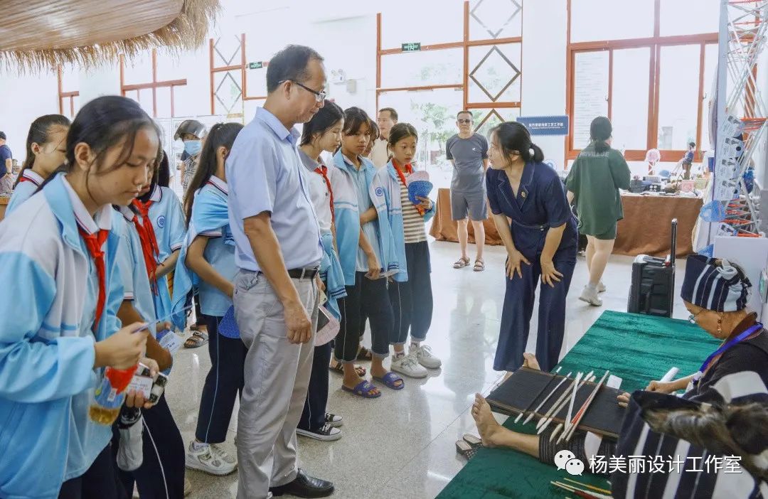 项目负责人杨丽老师为学生们普及黎族传统手工艺的相关知识。从黎族五大方言支系的分布到黎族传统纺染织绣技艺、船型屋营造技艺、黎族原始制陶技艺、黎族藤竹编技艺。带领师生参观东方市非物质文化遗产收藏研究协会的馆藏珍品,让孩子们用最直观的方式,了解本民族文化。学生们认真聆听,积极发问,通过本次非遗日展销活动,提高学生对非物质文化遗产保护的意识,传承弘扬中华民族的优秀传统文化,营造良好的非物质文化遗产保护氛围。千年文化博大精深,我辈爱护薪火相传。