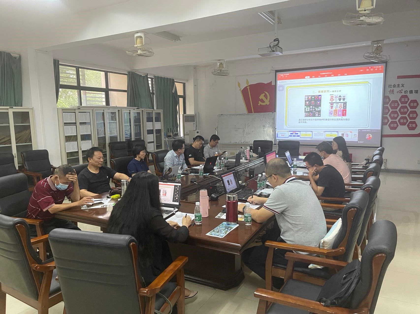 本次答辩采用学生线上和教师线下相结合的形式,通过语音对话、PPT展示作品的方式进行。答辩对象为2018级视觉传达设计专业全体同学,参加此次答辩工作的评委有13人,同时要邀请到校外专家郭瑽博士(中国科学院深海科学与工程研究所虚拟现实技术联合实验室主任,清华大学美术学院客座讲师)。答辩主要分为两个环节,第一个环节是学生自述情况,第二个环节是由主辩老师针对论文内容提出相关问题,由同学现场回答。在自述情况环节,每位学生都阐述了自己对设计选题的认知,在设计完善过程中的收获等。随后,在主辩老师提问环节,同学们回答简明准确,虽然仍然存在不足,但是都得到了老师的充分肯定。最后针对每位学生的发言,主辩老师也给同学们提出了针对性的意见和要求。经过校内外师生们的共同努力,视觉传达设计专业第一次毕业设计答辩圆满完成。